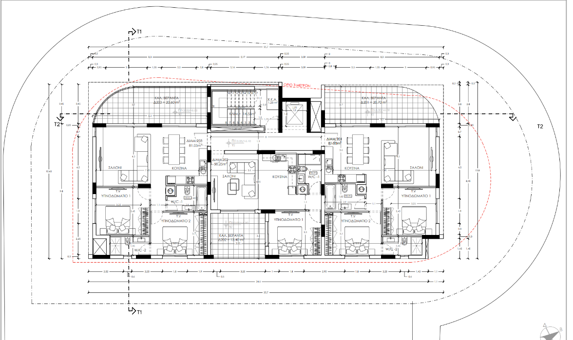 A three floor contemporary building withal total of 8 apartments. It will consist of two apartments of one bedroom, five apartments of two bedrooms, and one apartment of three bedrooms.