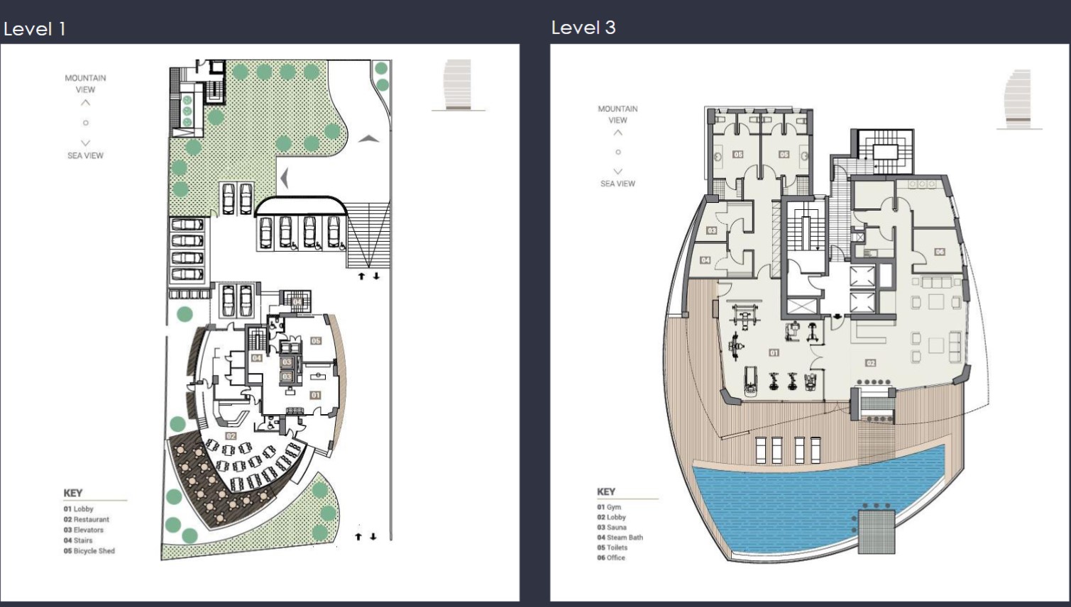 A boutique hotel with catering, room service, spa and gym facilities and the use of a swimming pool that hangs above the calmness of the sea below. Safety, security and privacy are high priority considerations for our residential buildings, so all the residents parking and storage spaces were conveniently placed on the lower level with direct access to the apartments.