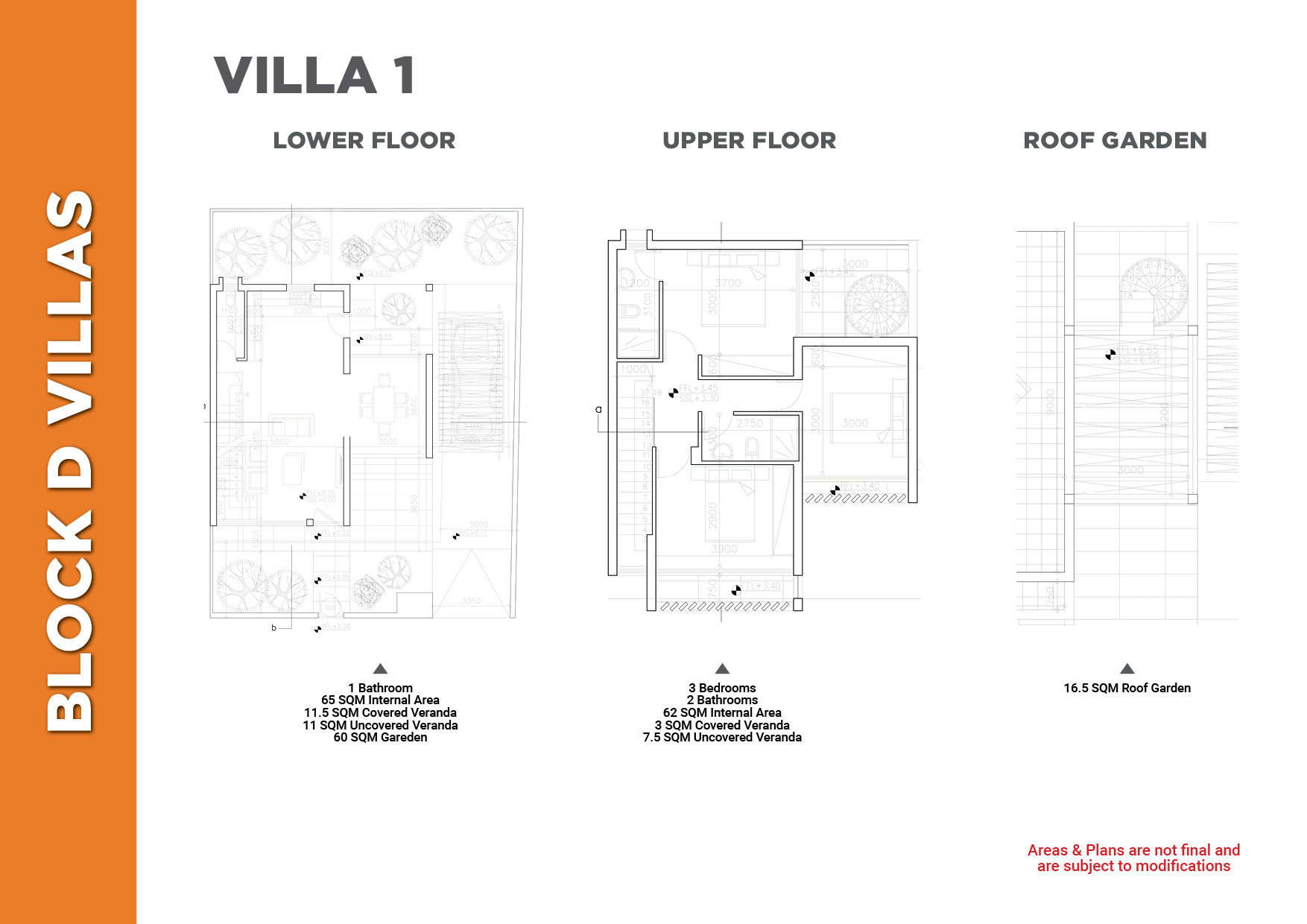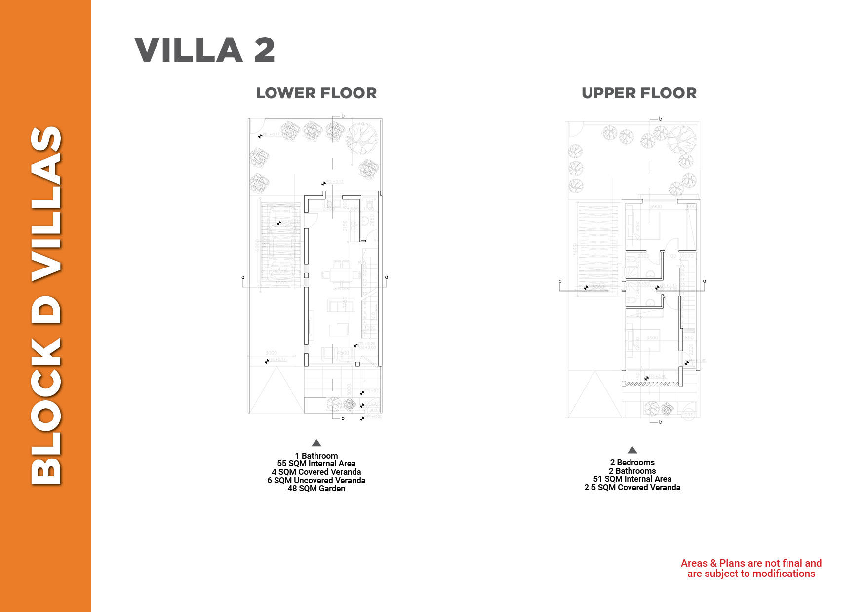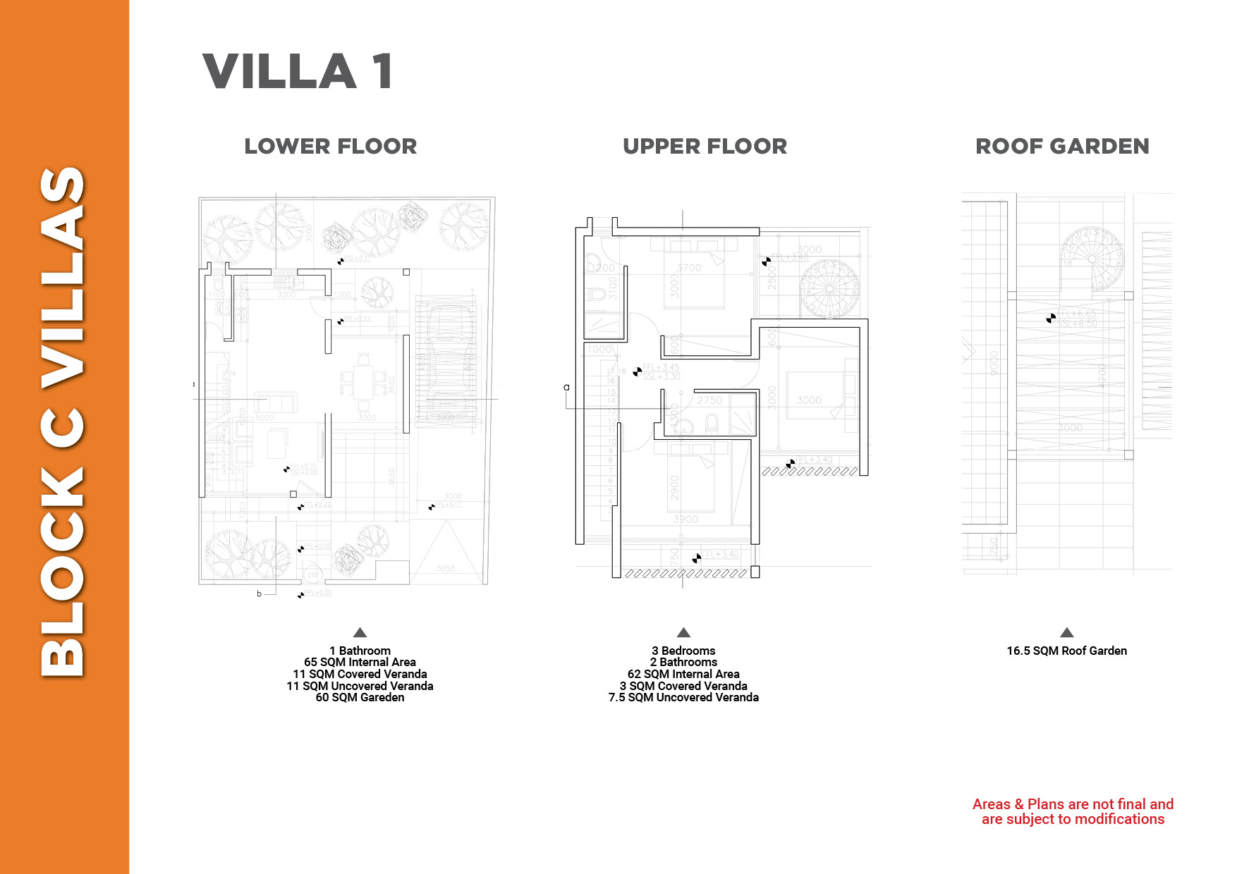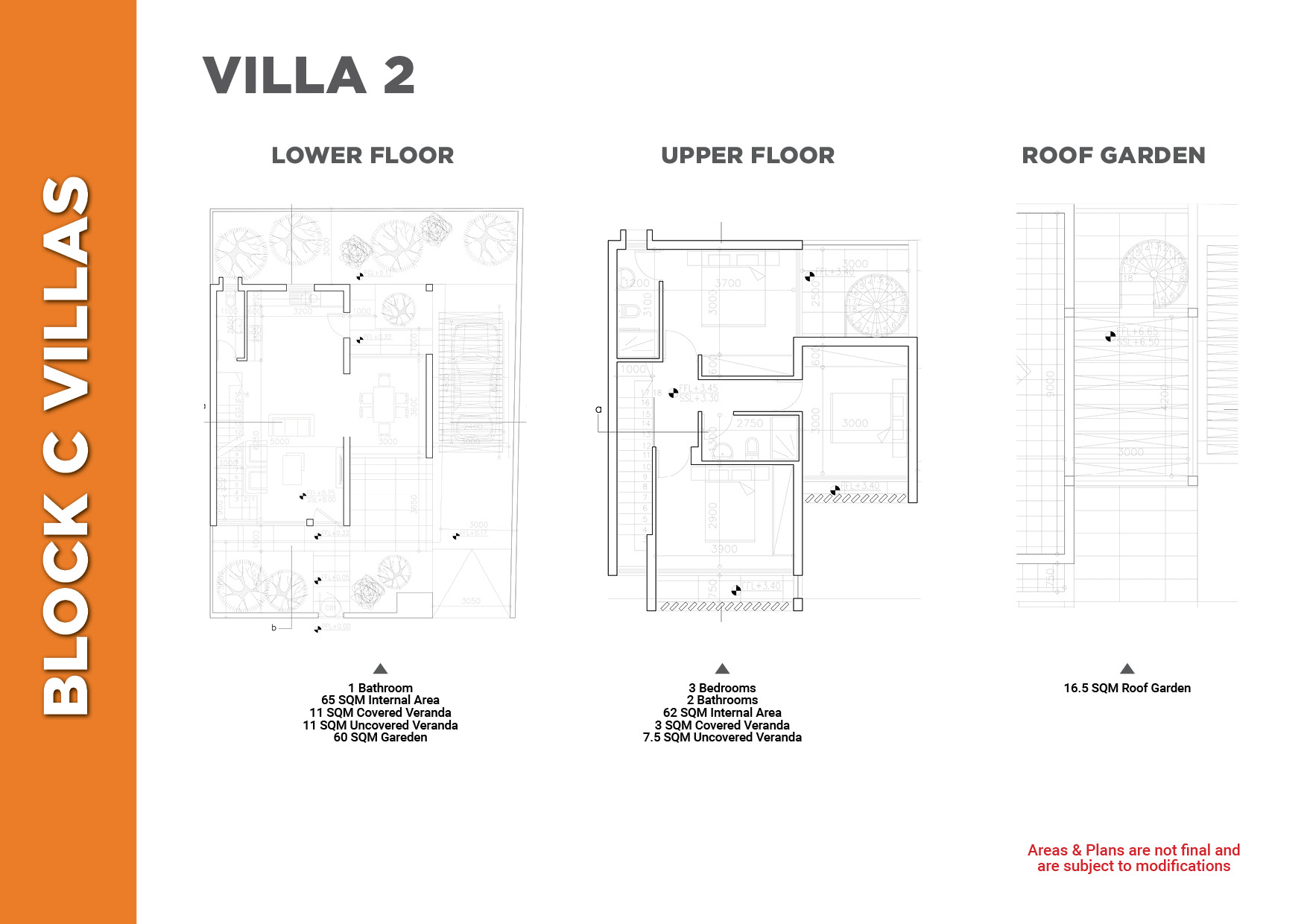 Spacious villas with  two or three  bedrooms, with large covered and uncovered verandas, luxurious bedrooms and bathrooms, open plan arrangement for living and dining areas adjust to trendy kitchens, private parking for each resident and storage space.