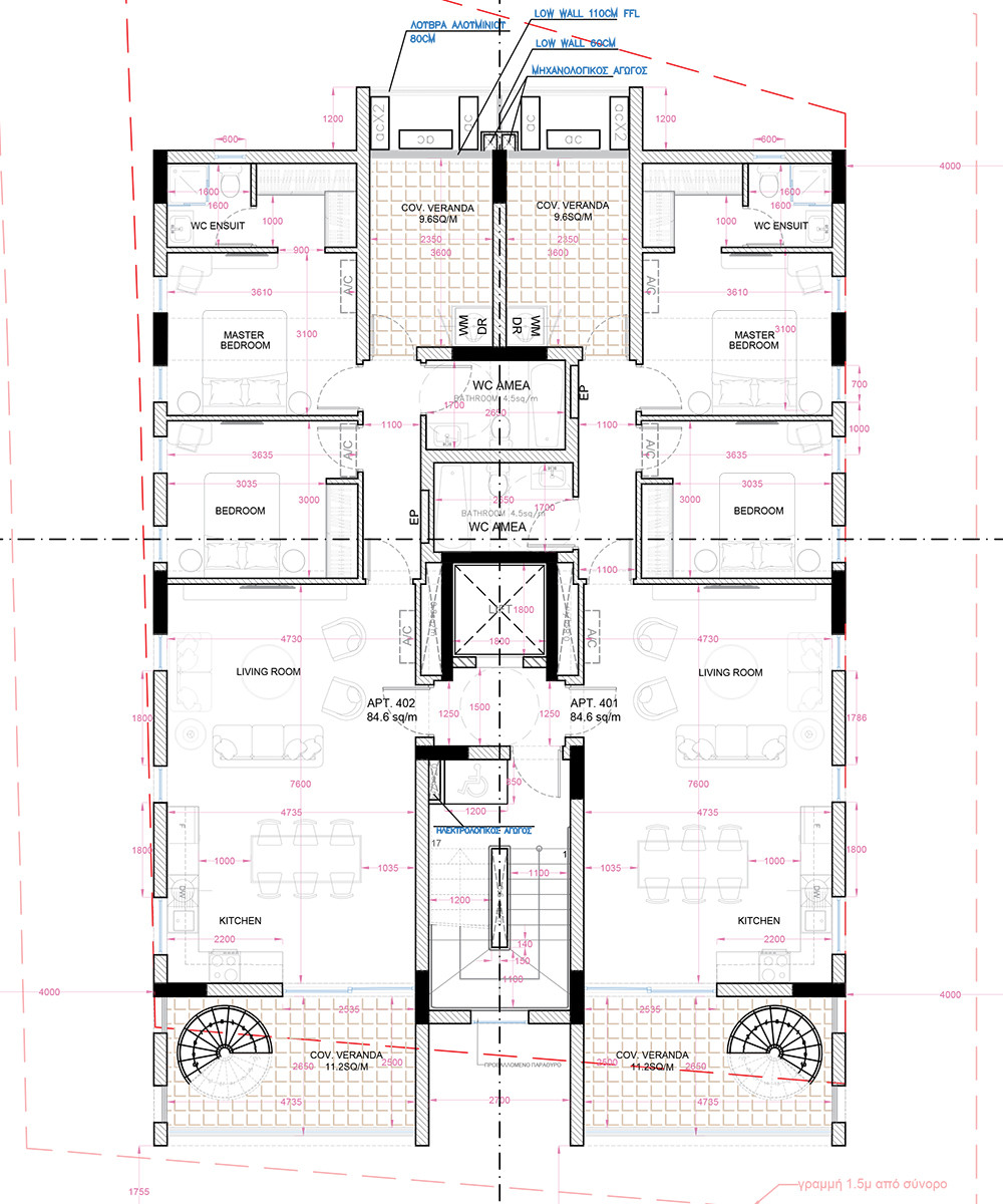 There are two two bedrooms penthouses with asking price of 335.000 euros plus vat