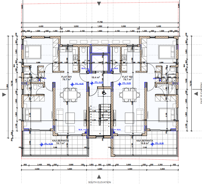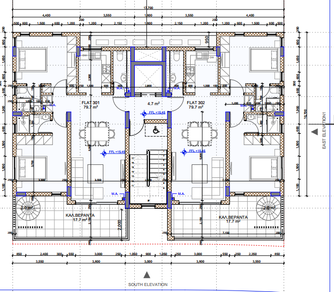 There are five apartments for sale with asking price between €233.000-€338.000 plus vat.