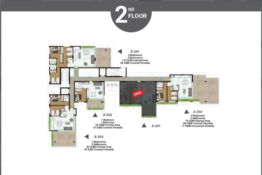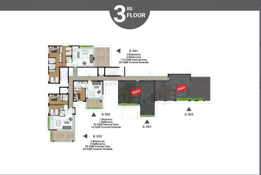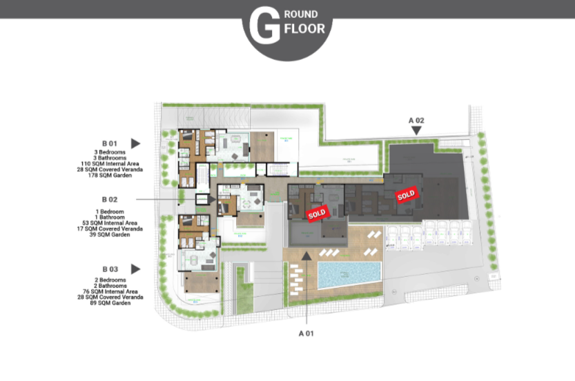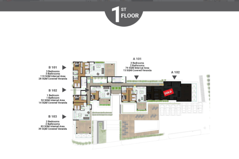 A prestigious and unique residential building of two blocks, featuring 1,2, & 3 bedroom apartments with spacious verandas and terraces.