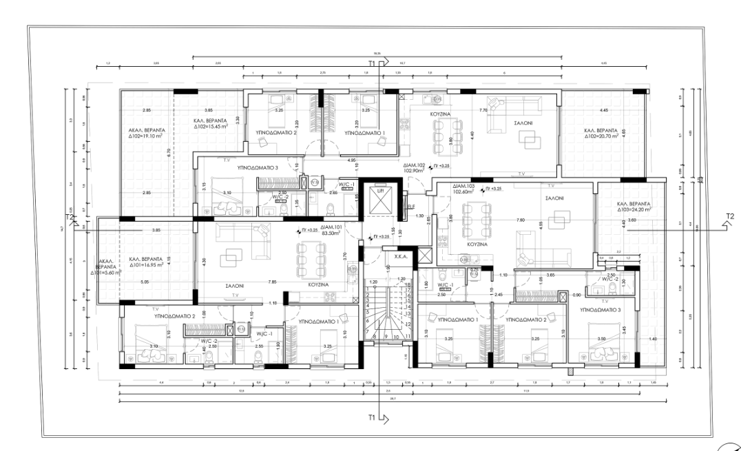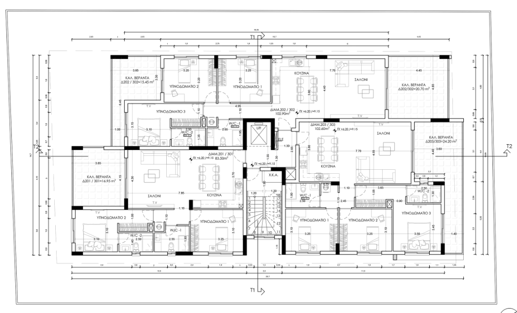 There are two 3 beds apartments with total living area of 127.35sq.m. -138.55sq.m with asking price of €217.000- €220.000 plus vat