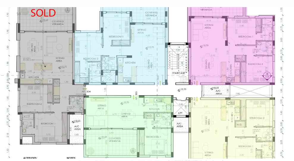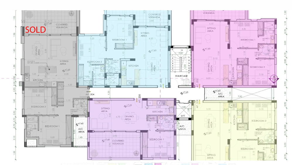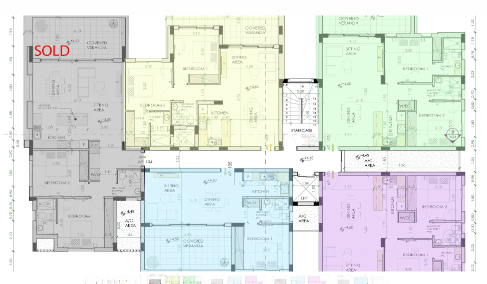 Each floor features five apartments: four spacious two-bedroom units and one comfortable one-bedroom unit