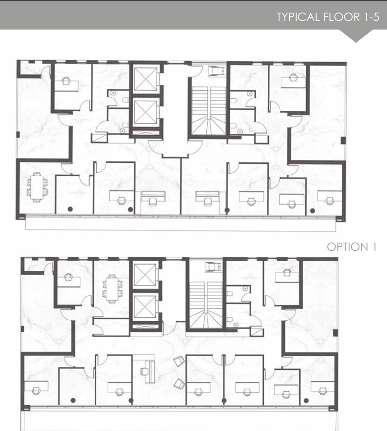 All offices have kitchens, toilets, covered verandas and they  can be divided into offices, meeting rooms and reception areas. The building is equipped with raised floors suitable for structured cabling and drop ceilings with climate control units.