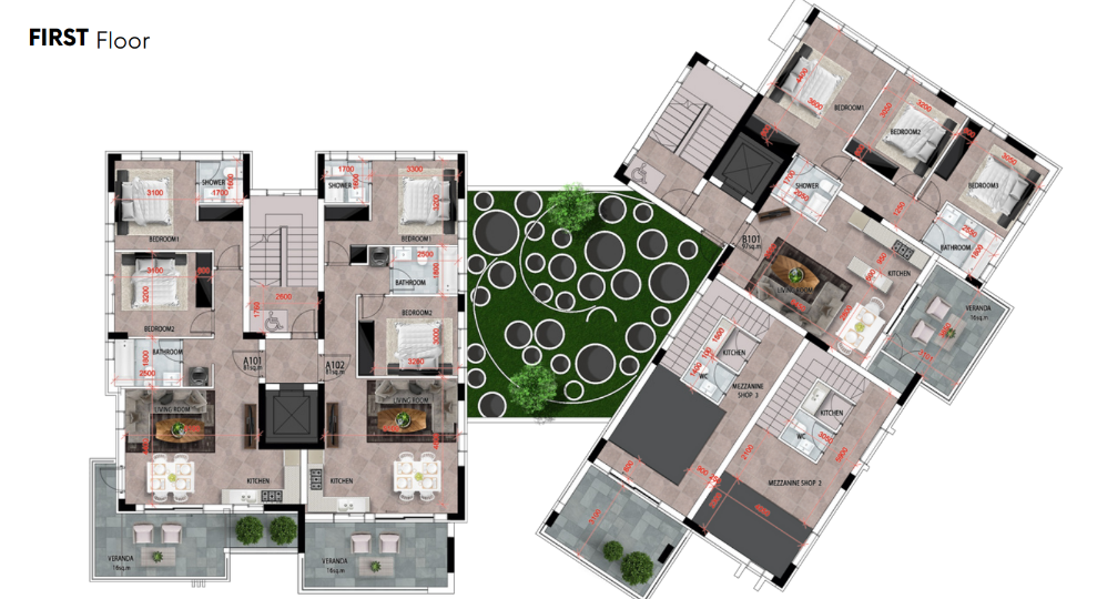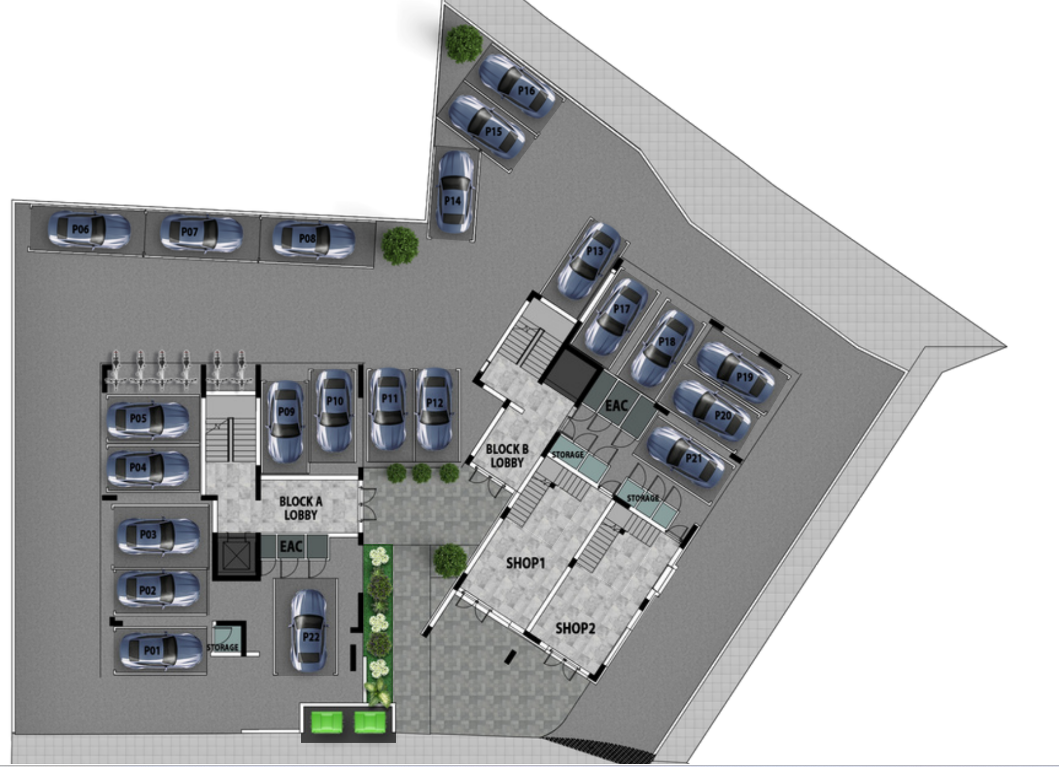 Beautiful office spaces on the ground floor on this stunning project with two blocks of apartments.