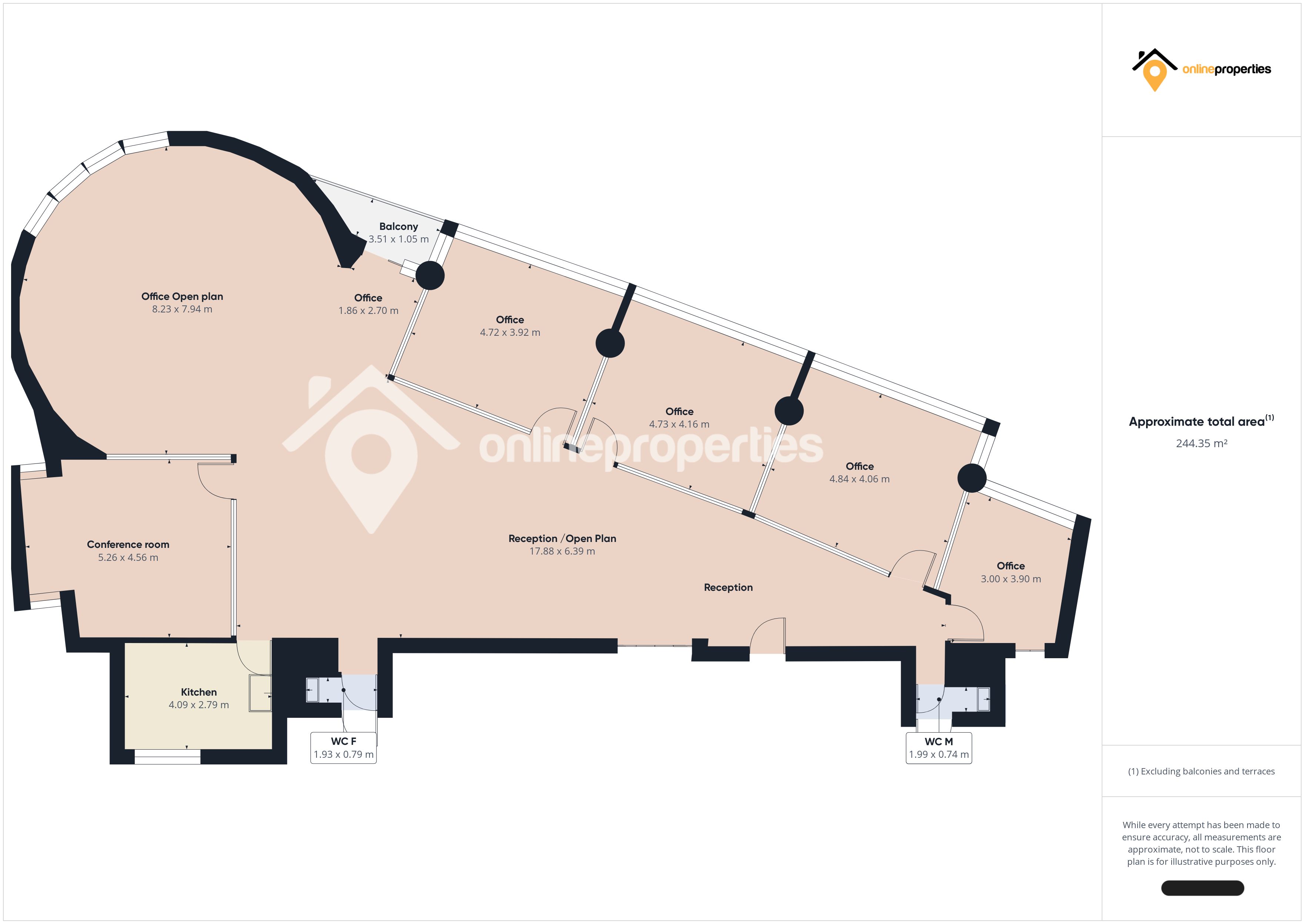 The office has 4 enclosed offices, a large reception a huge open plan space, a conference room, a seperate kitchen with seating, two WC'S and 5 parking spaces